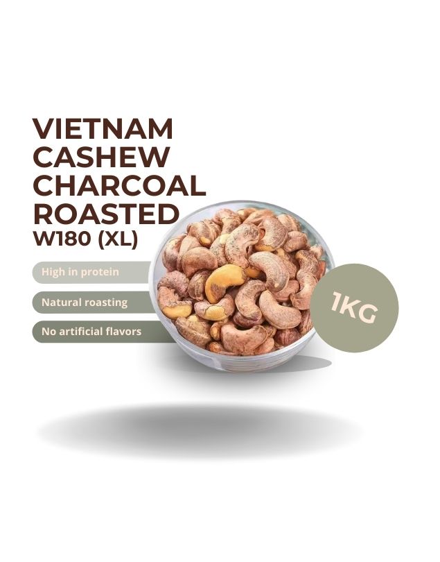 Indulge in the rich, buttery taste of extra-large W180 cashew nuts, carefully roasted over traditional charcoal to deliver a smoky aroma and irresistible crunch. Perfect as a healthy snack or a gourmet touch to your favorite dishes.